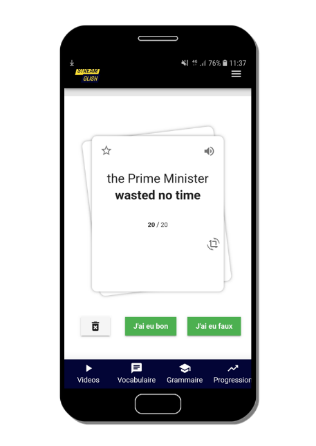 Notre algorithme de révision espacée vous fera mémoriser les mots et expressions à connaître, et optimisera voter programme de révision pour vous faire gagner du temps